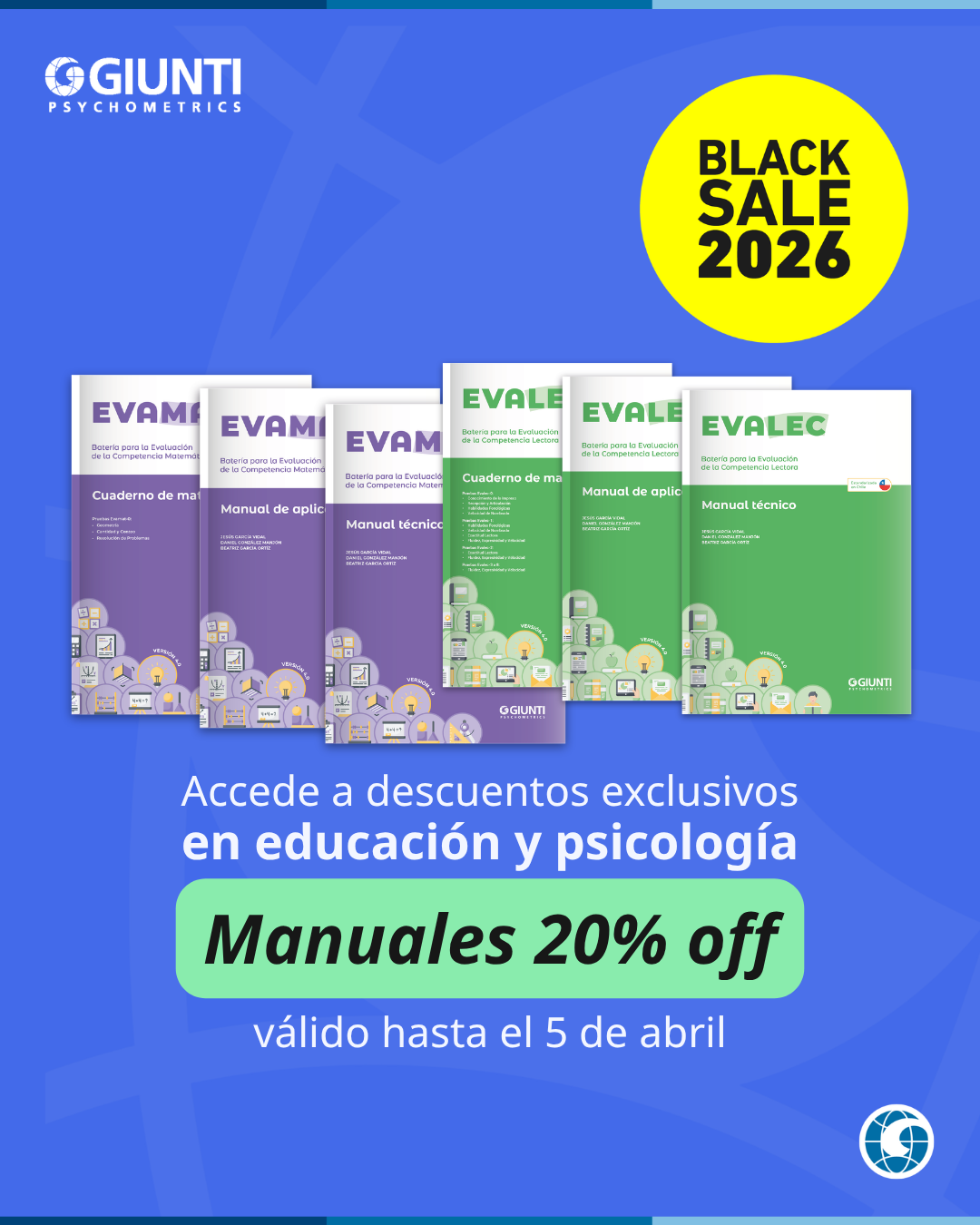 Aprovecha la oportunidad de obtener todos los manuales de nuestras baterías pedagógicas y psicopedagógicas con un 20% de descuento exclusivo en nuestra web.